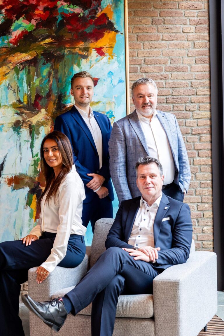 Tjeerd en Stijn Jenniskens, Hans Baetsen en Carine Wijnen vormen samen Duisenburgh Vermogensregie Jenniskens.